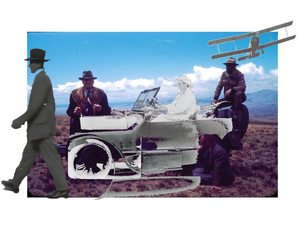 ‘Using a montage effect reminiscent of a 3D ‘pop-up’ postcard the artist ‘cuts’ and redisplays extracts from the collection in a way that would be impossible, criminal even, using non-digital tools…Equipped with her digital tools MacAskill offers an alternative future for this otherwise lost moment in time: to deconstruct the past and represent it as the present.’